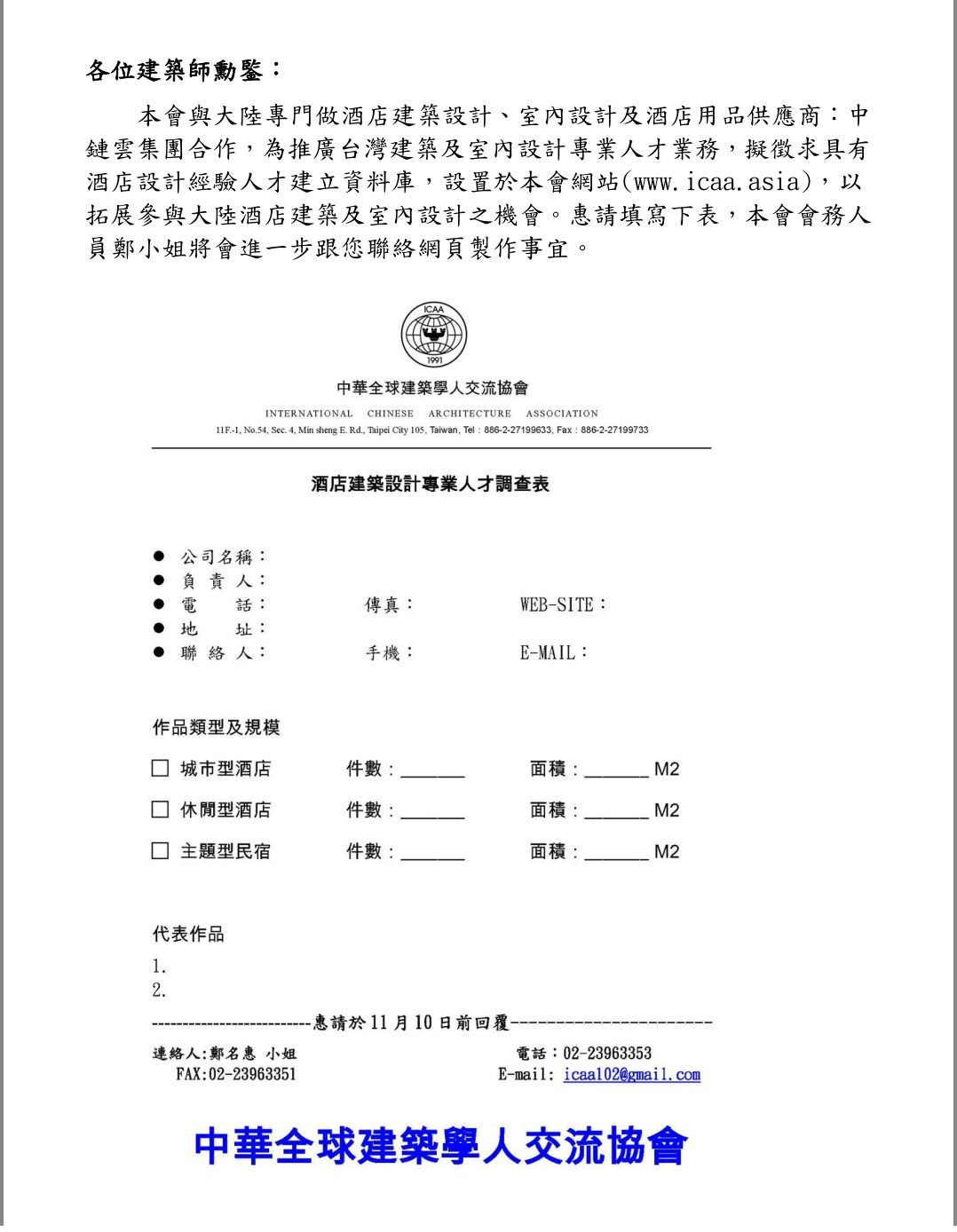 點擊下載:酒店建築設計專業人才調查表】
